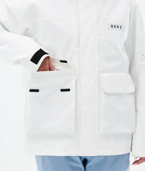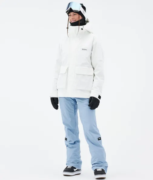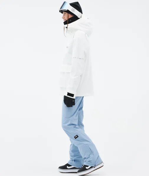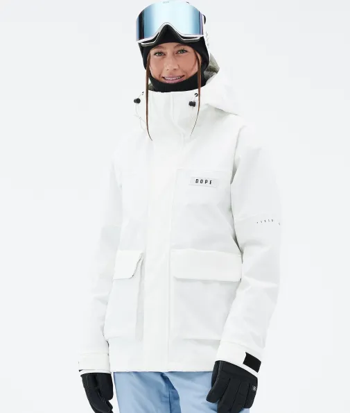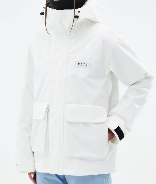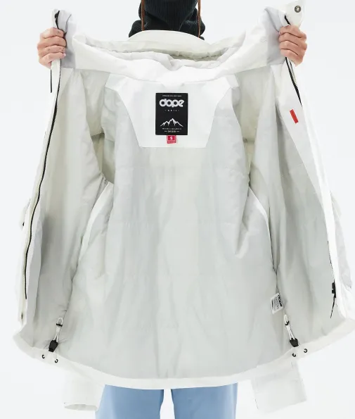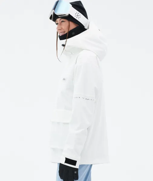 Acme W Snowboardjacke Damen Whitish|Vorhang auf für die Dope Acme Jacke! Mit ihrem schlichten Design und der cleanen, knopflosen Frontleiste sowie den zwei großen Cargotaschen vereint sie Funktionalität mit authentischem Utility-Style. Für gechillte Retro-Vibes kannst du die Jacke tragen, wie sie ist. Oder du ziehst den Kordelzug im Saum fest, um einen Box-Cut-Look zu kreieren. So oder so, mit ihrem 4-Way-Stretch macht diese leichte und unglaublich vielseitige Jacke jede Bewegung mit. Die Acme bringt alle Features mit, die du brauchst, um den lieben langen Tag Spaß im Schnee zu haben, ganz ohne Schnickschnack.
