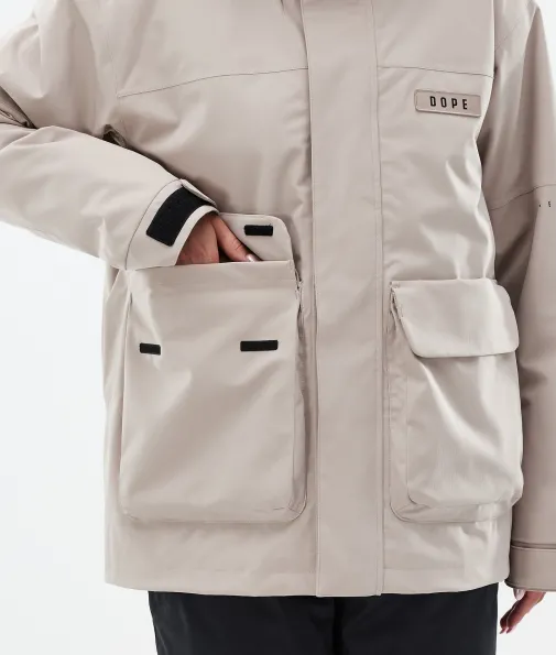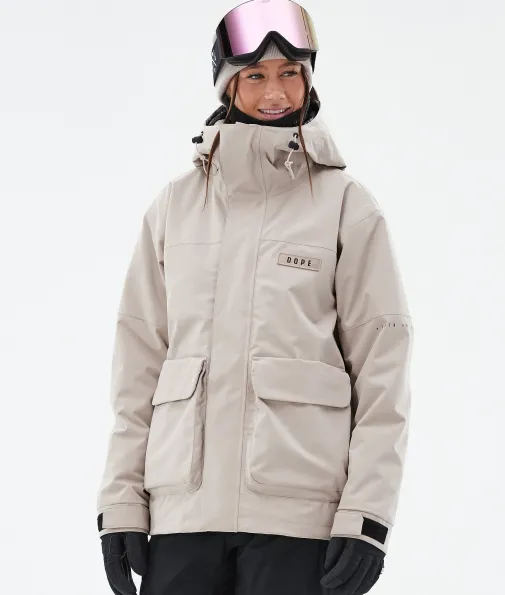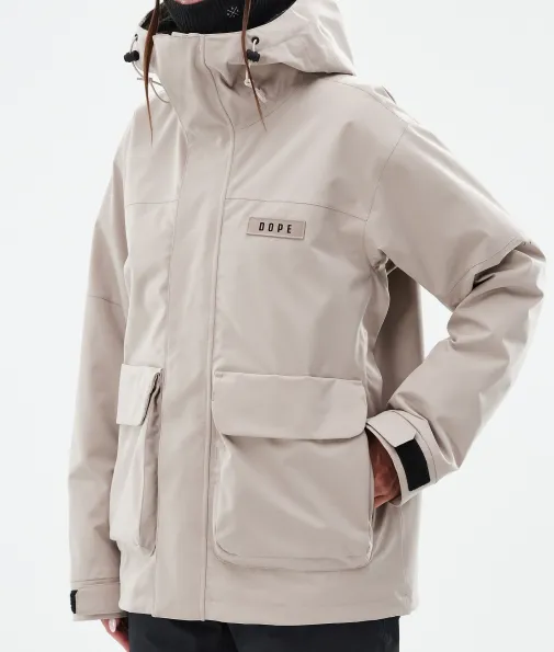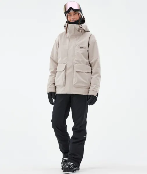 Acme W Skijacke Damen Sand|Vorhang auf für die Dope Acme Jacke! Mit ihrem schlichten Design und der cleanen, knopflosen Frontleiste sowie den zwei großen Cargotaschen vereint sie Funktionalität mit authentischem Utility-Style. Für gechillte Retro-Vibes kannst du die Jacke tragen, wie sie ist. Oder du ziehst den Kordelzug im Saum fest, um einen Box-Cut-Look zu kreieren. So oder so, mit ihrem 4-Way-Stretch macht diese leichte und unglaublich vielseitige Jacke jede Bewegung mit. Die Acme bringt alle Features mit, die du brauchst, um den lieben langen Tag Spaß im Schnee zu haben, ganz ohne Schnickschnack.