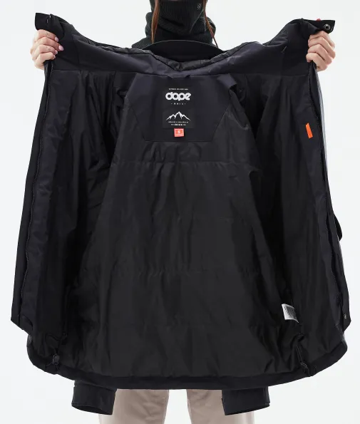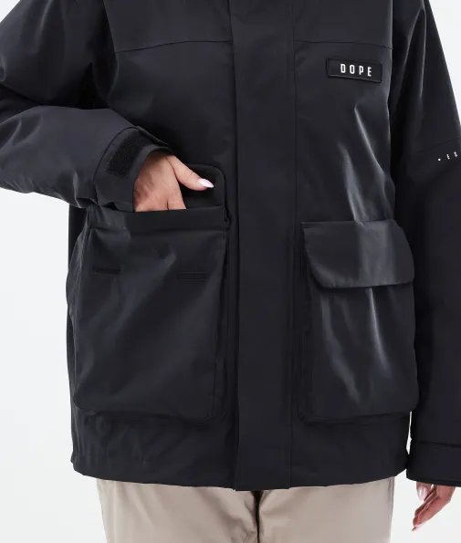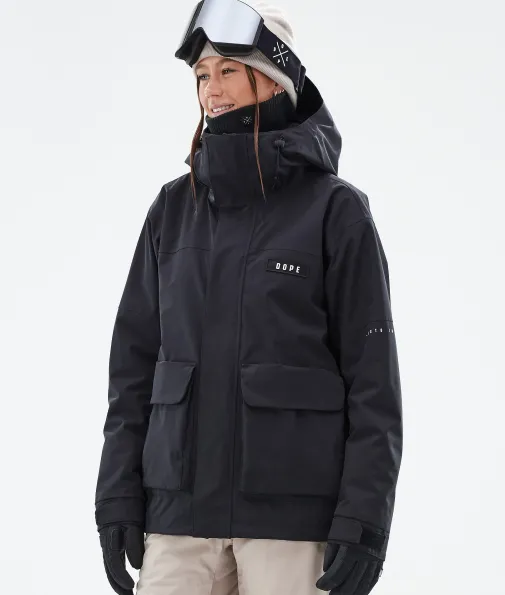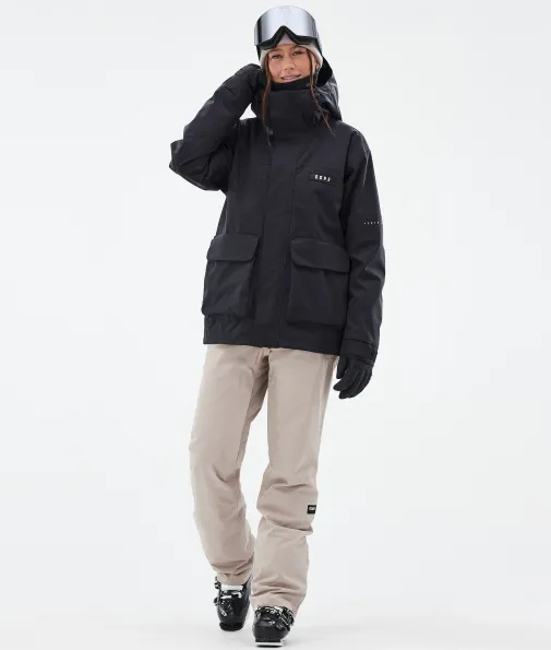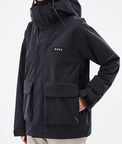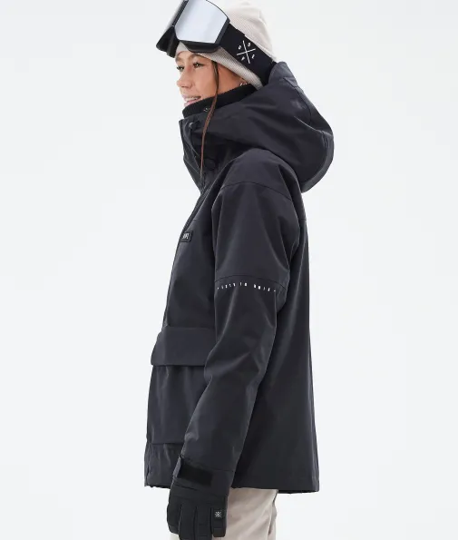 Acme W Skijacke Damen Black|Vorhang auf für die Dope Acme Jacke! Mit ihrem schlichten Design und der cleanen, knopflosen Frontleiste sowie den zwei großen Cargotaschen vereint sie Funktionalität mit authentischem Utility-Style. Für gechillte Retro-Vibes kannst du die Jacke tragen, wie sie ist. Oder du ziehst den Kordelzug im Saum fest, um einen Box-Cut-Look zu kreieren. So oder so, mit ihrem 4-Way-Stretch macht diese leichte und unglaublich vielseitige Jacke jede Bewegung mit. Die Acme bringt alle Features mit, die du brauchst, um den lieben langen Tag Spaß im Schnee zu haben, ganz ohne Schnickschnack.