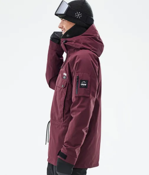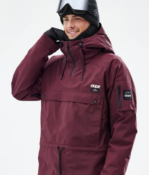 Annok Snowboardjacke Herren Don Burgundy|Legenden muss man eigentlich nicht vorstellen, wir machen es trotzdem. Die Annok ist zurück, im unverkennbaren Dope Signature Style, besser als je zuvor und bereit, das auch zu beweisen. Wasserdicht und gefüttert ist die Annok wie dafür gemacht, um all das in Angriff zu nehmen, was der Berg zu bieten hat. Mit viel Liebe zum Detail haben wir viele Kleinigkeiten wie die kontrastreichen Kordelbänder oder das dreifache Taschensystem integriert. All das macht die Annok zu einer grandiosen, vom Streetstyle inspirierten Jacke im ikonischen Anorak-Stil, die dich vom Park bis in den Powder begleitet, dir beim shredden ein Lächeln ins Gesicht zaubert und dich dabei fantastisch aussehen lässt.