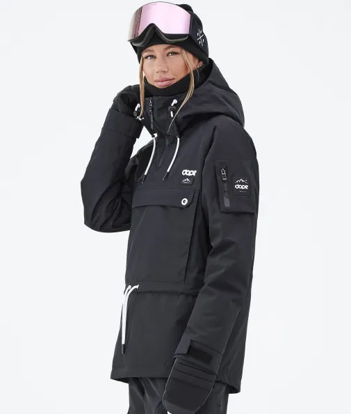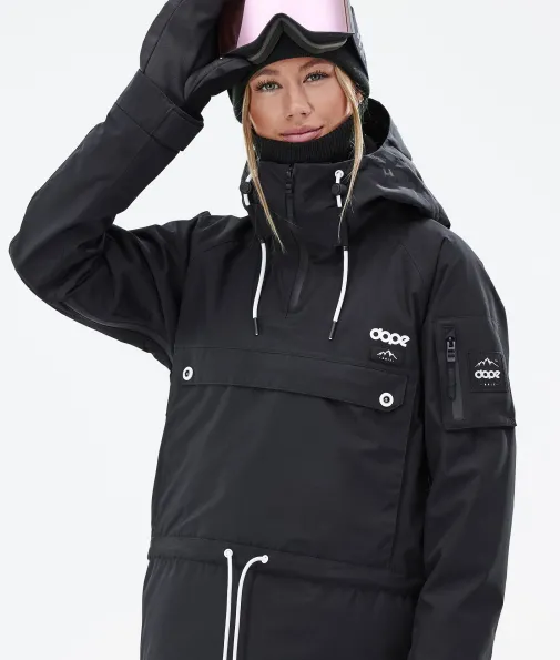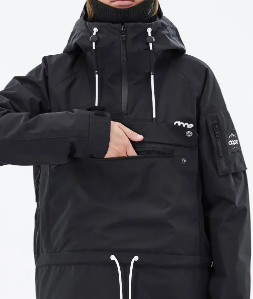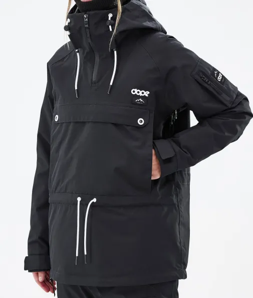 Annok W Skijacke Damen Black|Legenden muss man eigentlich nicht vorstellen, wir machen es trotzdem. Die Annok ist zurück, im unverkennbaren Dope Signature Style, besser als je zuvor und bereit, das auch zu beweisen. Wasserdicht und gefüttert ist die Annok wie dafür gemacht, um all das in Angriff zu nehmen, was der Berg zu bieten hat. Mit viel Liebe zum Detail haben wir viele Kleinigkeiten wie die kontrastreichen Kordelbänder oder das dreifache Taschensystem integriert. All das macht die Annok zu einer grandiosen, vom Streetstyle inspirierten Jacke im ikonischen Anorak-Stil, die dich vom Park bis in den Powder begleitet, dir beim shredden ein Lächeln ins Gesicht zaubert und dich dabei fantastisch aussehen lässt.
