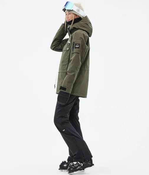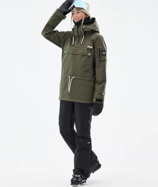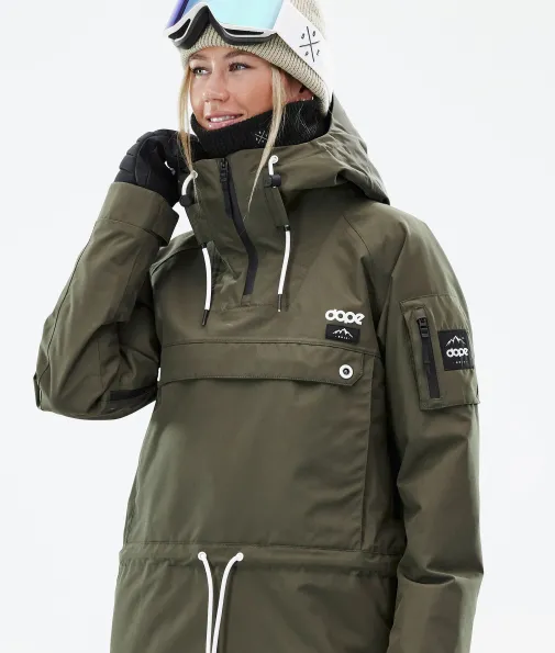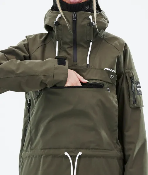 Annok W Skijacke Damen Olive Green|Legenden muss man eigentlich nicht vorstellen, wir machen es trotzdem. Die Annok ist zurück, im unverkennbaren Dope Signature Style, besser als je zuvor und bereit, das auch zu beweisen. Wasserdicht und gefüttert ist die Annok wie dafür gemacht, um all das in Angriff zu nehmen, was der Berg zu bieten hat. Mit viel Liebe zum Detail haben wir viele Kleinigkeiten wie die kontrastreichen Kordelbänder oder das dreifache Taschensystem integriert. All das macht die Annok zu einer grandiosen, vom Streetstyle inspirierten Jacke im ikonischen Anorak-Stil, die dich vom Park bis in den Powder begleitet, dir beim shredden ein Lächeln ins Gesicht zaubert und dich dabei fantastisch aussehen lässt.