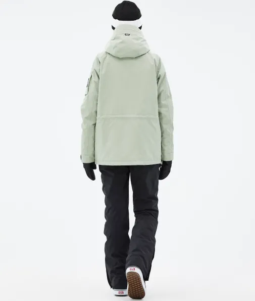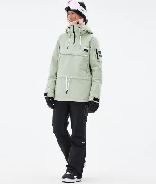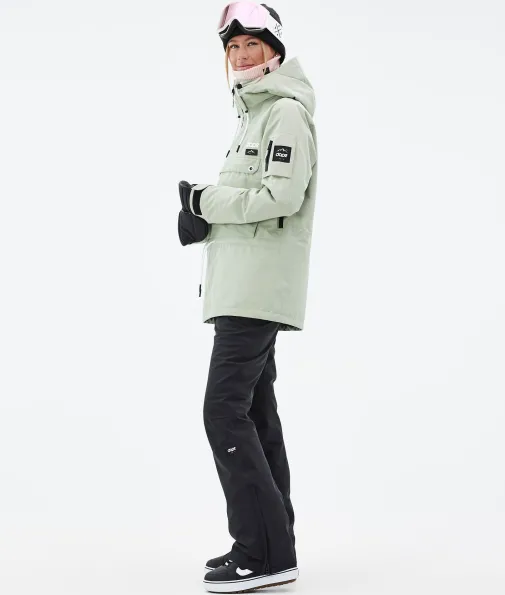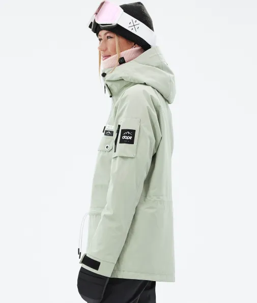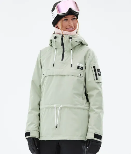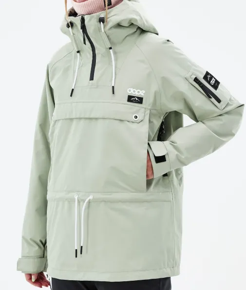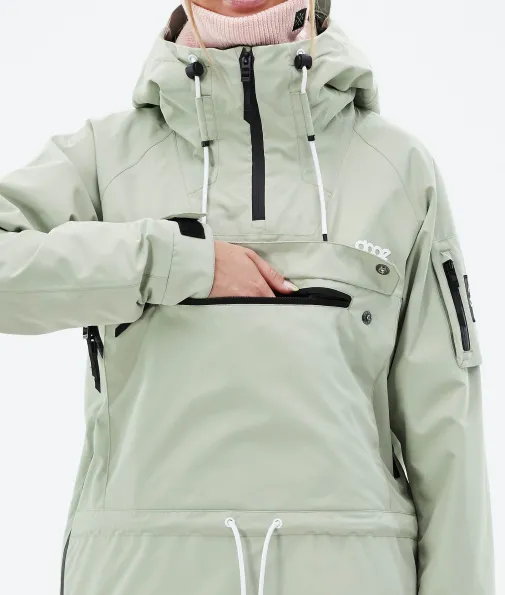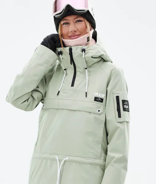 Annok W Snowboardjacke Damen Soft Green|Legenden muss man eigentlich nicht vorstellen, wir machen es trotzdem. Die Annok ist zurück, im unverkennbaren Dope Signature Style, besser als je zuvor und bereit, das auch zu beweisen. Wasserdicht und gefüttert ist die Annok wie dafür gemacht, um all das in Angriff zu nehmen, was der Berg zu bieten hat. Mit viel Liebe zum Detail haben wir viele Kleinigkeiten wie die kontrastreichen Kordelbänder oder das dreifache Taschensystem integriert. All das macht die Annok zu einer grandiosen, vom Streetstyle inspirierten Jacke im ikonischen Anorak-Stil, die dich vom Park bis in den Powder begleitet, dir beim shredden ein Lächeln ins Gesicht zaubert und dich dabei fantastisch aussehen lässt.