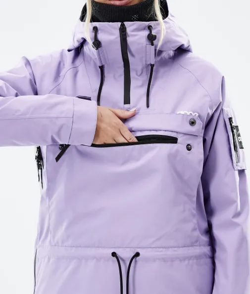 Annok W Skijacke Damen Faded Violet|Legenden muss man eigentlich nicht vorstellen, wir machen es trotzdem. Die Annok ist zurück, im unverkennbaren Dope Signature Style, besser als je zuvor und bereit, das auch zu beweisen. Wasserdicht und gefüttert ist die Annok wie dafür gemacht, um all das in Angriff zu nehmen, was der Berg zu bieten hat. Mit viel Liebe zum Detail haben wir viele Kleinigkeiten wie die kontrastreichen Kordelbänder oder das dreifache Taschensystem integriert. All das macht die Annok zu einer grandiosen, vom Streetstyle inspirierten Jacke im ikonischen Anorak-Stil, die dich vom Park bis in den Powder begleitet, dir beim shredden ein Lächeln ins Gesicht zaubert und dich dabei fantastisch aussehen lässt.
