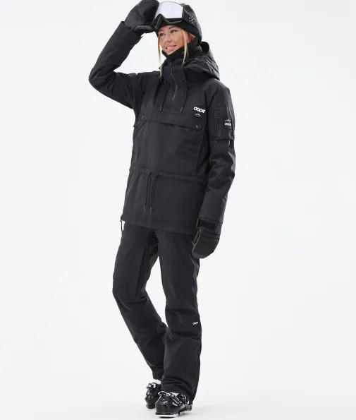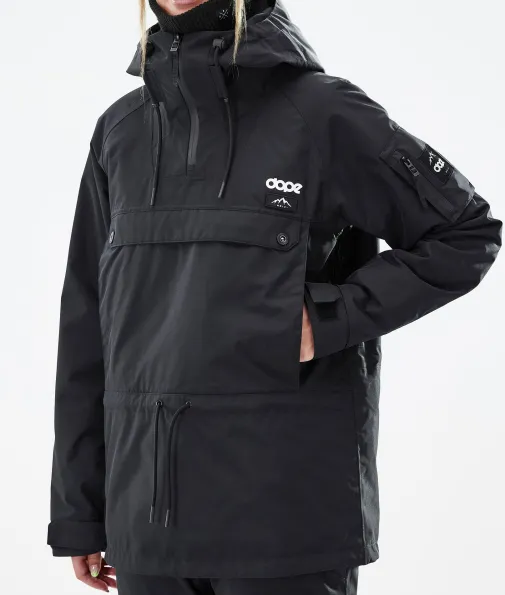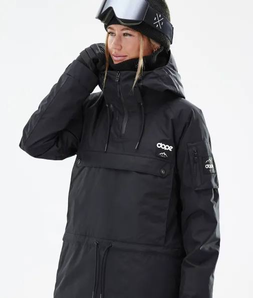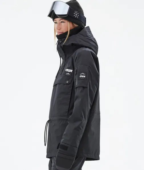 Annok W Skijacke Damen Blackout|Legenden muss man eigentlich nicht vorstellen, wir machen es trotzdem. Die Annok ist zurück, im unverkennbaren Dope Signature Style, besser als je zuvor und bereit, das auch zu beweisen. Wasserdicht und gefüttert ist die Annok wie dafür gemacht, um all das in Angriff zu nehmen, was der Berg zu bieten hat. Mit viel Liebe zum Detail haben wir viele Kleinigkeiten wie die kontrastreichen Kordelbänder oder das dreifache Taschensystem integriert. All das macht die Annok zu einer grandiosen, vom Streetstyle inspirierten Jacke im ikonischen Anorak-Stil, die dich vom Park bis in den Powder begleitet, dir beim shredden ein Lächeln ins Gesicht zaubert und dich dabei fantastisch aussehen lässt.