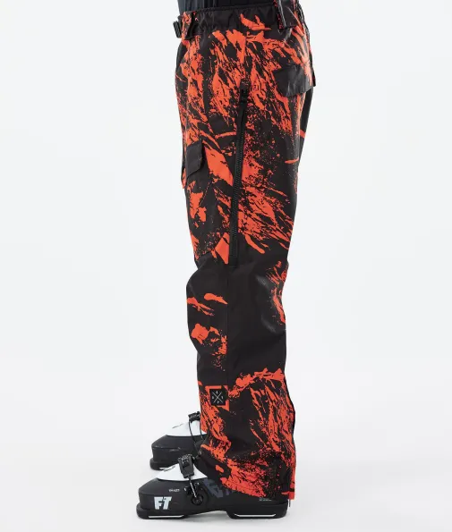 Antek 2022 Skihose Herren Paint Orange|Die Antek ist die perfekte Hose für alle, die sich zwar schon den ganzen Tag im Park ausgetobt haben, aber beim Après-Ski trotzdem nochmal eine Schippe drauflegen können. Wir haben bewusst auf eine sperrige Fütterung verzichtet, sodass die Antek superleicht bleibt, dich aber gleichzeitig verlässlich vor der Nässe schützt, egal ob du im Powder unterwegs warst oder es an der Bar ein wenig wilder zuging. Dank des elastischen Bunds ist sie den ganzen Tag über bequem und der stylische Baggy-Look mit den praktischen Cargotaschen tut sein übriges, um auch optisch als Augenweide durchzugehen. Mit der Antek siehst du also nicht nur ziemlich lässig aus, sondern bist auch in jeder Situation bestens gerüstet – ob warmer Frühling oder tiefster Winter, Sonne oder Neuschnee, die Antek performt unter allen Bedingungen.