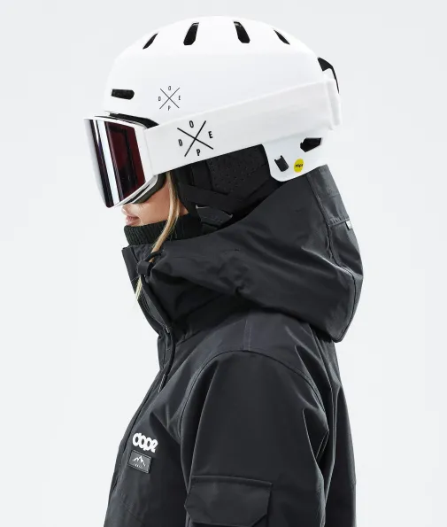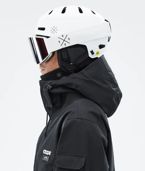 Macon 2.0 MIPS Skihelm X-Up Matte White w/ Black|Der Macon 2.0 ist ein vom Skateboarding inspirierter, mit Tech vollgepackter Helm, der deinen Kopf diesen Winter perfekt schützt. Durch seine spezielle Hardshell-Konstruktion ist der Macon 2.0 um 20% leichter als sein Vorgänger. Außerdem hat er ein Low-Profile-Bombshell-Design, das sowohl in Kombination mit Skibrillen als auch mit Kapuzen für einen optimalen Sitz sorgt.