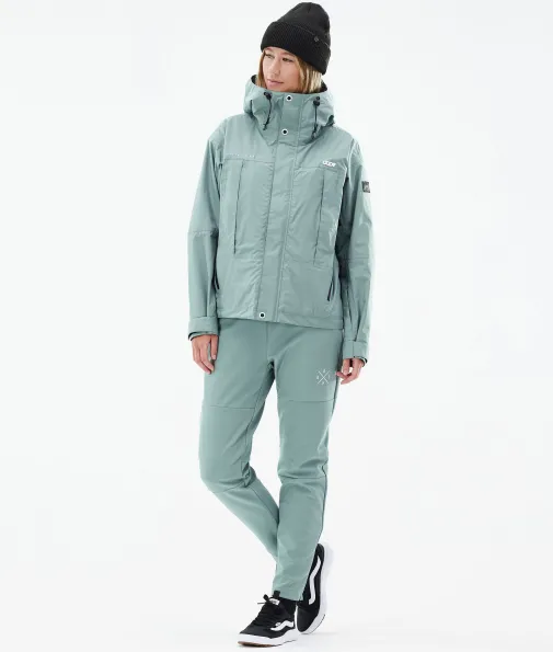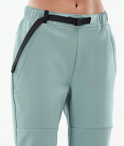 Nomad W Outdoorhosen Damen Faded Green|Die Nomad Hose von Dope steht dank ihrer ergonomischen Passform und ihrem Trekking-orientierten Design für herausragende Performance in den Bergen. Hergestellt aus einer super robusten 4-Wege-Stretch Softshell Konstruktion und ausgestattet mit einem elastischen Hüftband mit integriertem Gürtel für totalen Komfort sowie Reißverschlusstaschen mit eingebautem Smartphone-Netz wird diese schmal zulaufende Wanderhose dieses Jahr garantiert zu einem neuen Liebling in deinem Kleiderschrank.