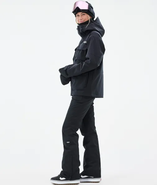 Zenith W Snowboardjacke Damen Black|Bei der Zenith Jacke trifft ein entspannter Schnitt auf lässigen Utility-Style. Vier übergroße Cargotaschen, extrem widerstandsfähiges Außenmaterial mit 4-Wege-Stretch und der Box-Cut-Look verleihen dir bei deinen nächsten Powder-Abenteuern ordentlich Retro-Vibe. Unsere Zenith ist von der Legacy Jacke inspiriert und bringt eine charmante „Weniger ist mehr“-Attitüde mit. Schnörkellos, ohne Schnickschnack und aufs Wesentliche fokussiert. Trotzdem bietet diese leichte und vielseitige Jacke alle Features, die du für einen ausgedehnten Tag im Schnee benötigst.