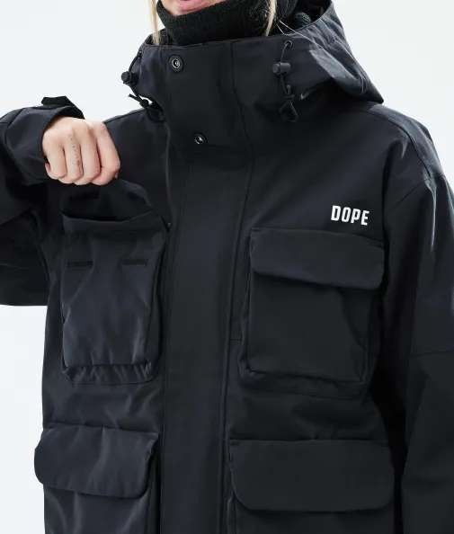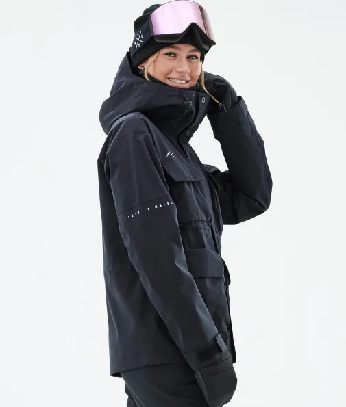 Zenith W Skijacke Damen Black|Bei der Zenith Jacke trifft ein entspannter Schnitt auf lässigen Utility-Style. Vier übergroße Cargotaschen, extrem widerstandsfähiges Außenmaterial mit 4-Wege-Stretch und der Box-Cut-Look verleihen dir bei deinen nächsten Powder-Abenteuern ordentlich Retro-Vibe. Unsere Zenith ist von der Legacy Jacke inspiriert und bringt eine charmante „Weniger ist mehr“-Attitüde mit. Schnörkellos, ohne Schnickschnack und aufs Wesentliche fokussiert. Trotzdem bietet diese leichte und vielseitige Jacke alle Features, die du für einen ausgedehnten Tag im Schnee benötigst.
