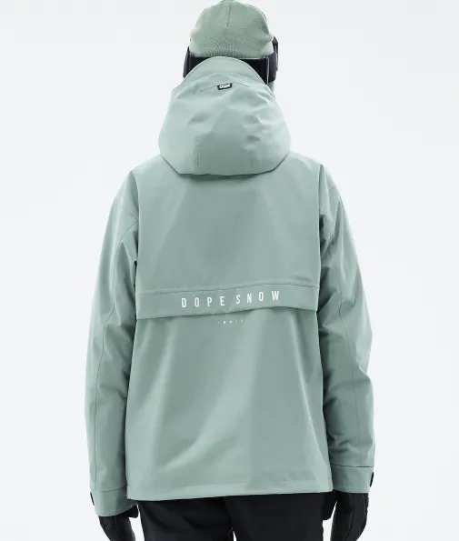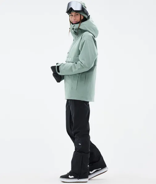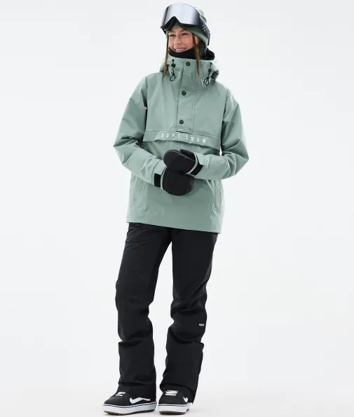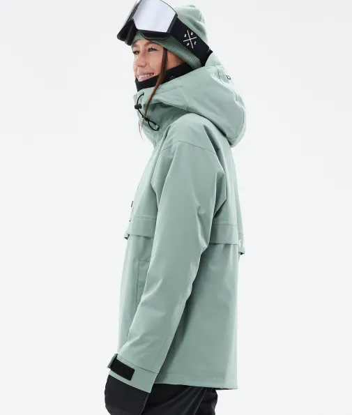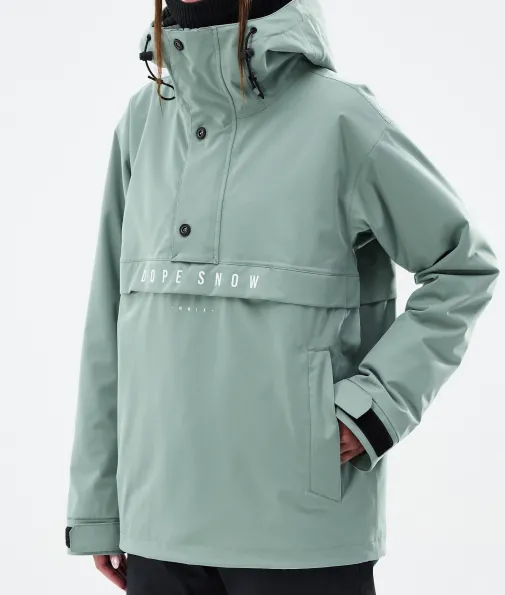 Legacy W Snowboardjacke Damen Faded Green|Die Legacy Jacke ist ein von den 90er Jahren inspirierter Anorak im Boxy Cut mit jeder Menge Vibe und den dazu passenden technischen Details. Wir haben die Legacy in Gedanken an relaxte und entspannte Sessions entwickelt, bei denen man einfach mal die Seele baumeln lassen möchte. Einfach übergezogen, bist du sofort bereit für den Schnee. Wenn du keine Lust auf ausgefallene Reißverschluss-Konstruktionen oder sperrigen Kram an Ski- und Snowboardjacken hast, dann ist die Legacy Jacke perfekt für dich. Und dank des High-Performance Shell Materials mit integriertem 4-Wege-Stretch sind wir uns sicher, dass sie auch bei dir einen bleibenden Eindruck hinterlassen wird.