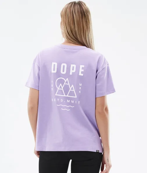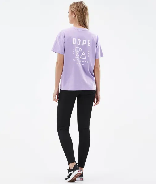 Standard W 2022 T-Shirt Damen Summit Faded Violet|Das Standard T-Shirt ist der perfekte Begleiter für jedes Abenteuer. Das superweiche Oekotext 100-zertifizierte und 260 g/m² leichte Single-Jersey-Gewebe mit 62% Bio-Baumwolle und 38% Tencel ist extrem strapazierfähig und leistungsstark. Wir haben ihm unsere charakteristische Dope-Passform und unser Lieblings-Design gegeben, damit es wieder unverwechselbar ist. Als erste Schicht am Morgen in der Ferienanlage oder für den Strand oder im Hochsommer, das Standard-Shirt ist perfekt in jeder Jahreszeit. Hergestellt in Litauen.